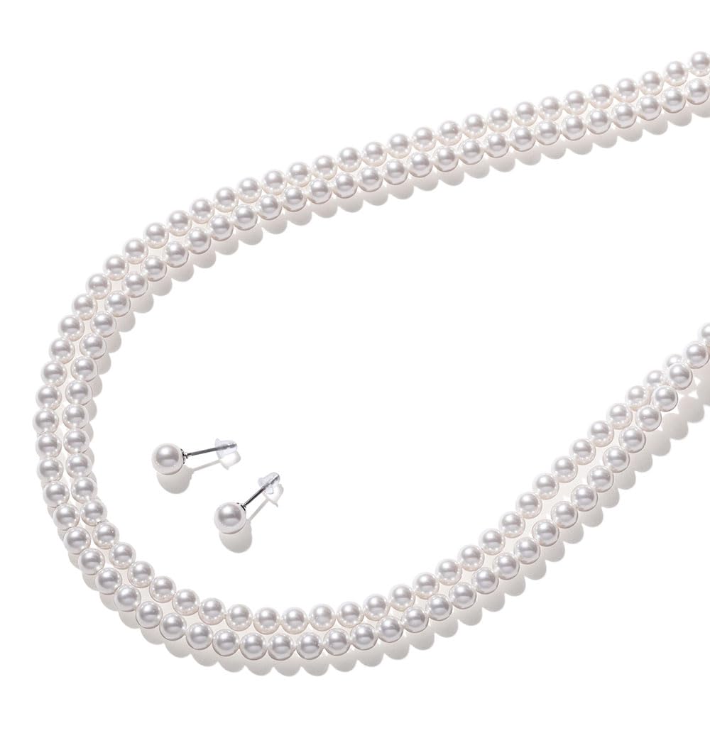 商品情報商品の説明主な仕様 【本真珠のようにナチュラルに輝くクリスタルパール】 あこや真珠のように美しく輝く真珠のロングネックレス。2連使いもできる2WAYスタイル。普段使いに人気の90cmのパールネックレスと8mmパールイヤリングのセット。【安心の日本製】 照り・色・キズなどの品質にこだわり、真円の真珠を使用...