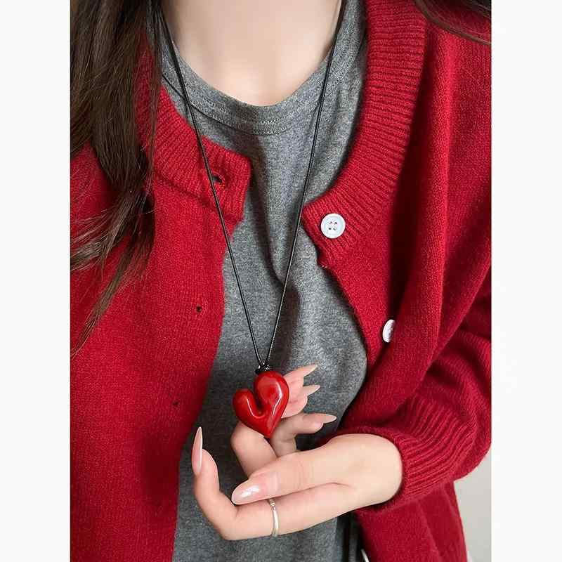 ・素材: プラスチック/レジン・形状: ハート型・チェーンスタイル: スタンダードチェーン・長さ: 51cm-60cm・色: 赤、銀、黒・スタイル: シンプル・重量: 1g・対象: 女性・デザイン要素: ジオメトリック