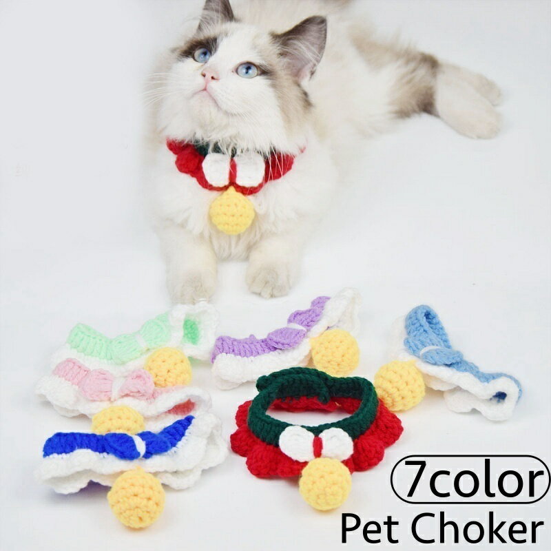 送料無料 チョーカー 首飾り 犬用 猫用 ペット用 アクセサリー ニット 手編...