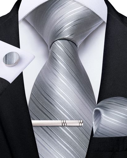 [DiBanGu]ネクタイ結婚式シルバーネクタイポケットチーフタイピンセットギフ...