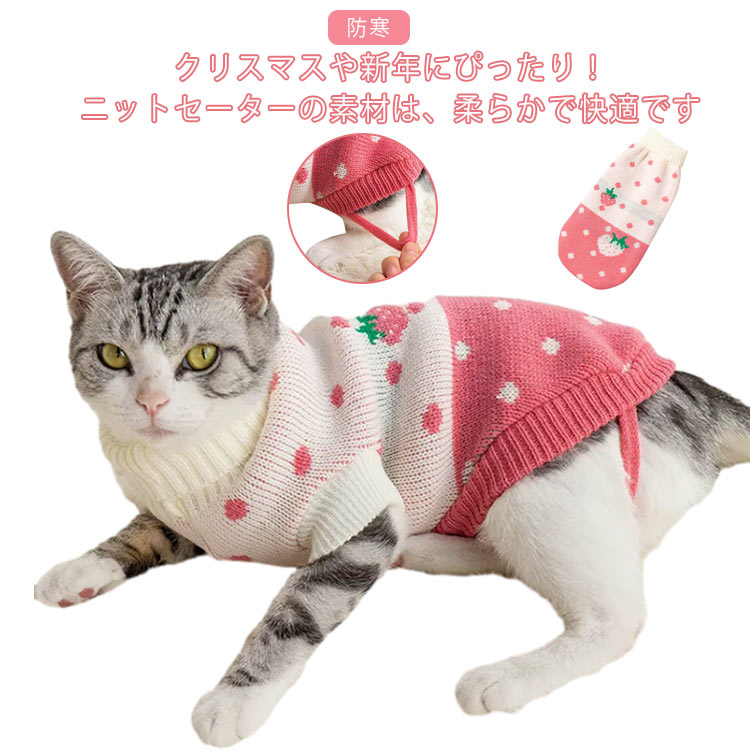 キャットウェア ペット服 猫服 犬服 防寒 セーター 冬 苺 イチゴ いちご ド...