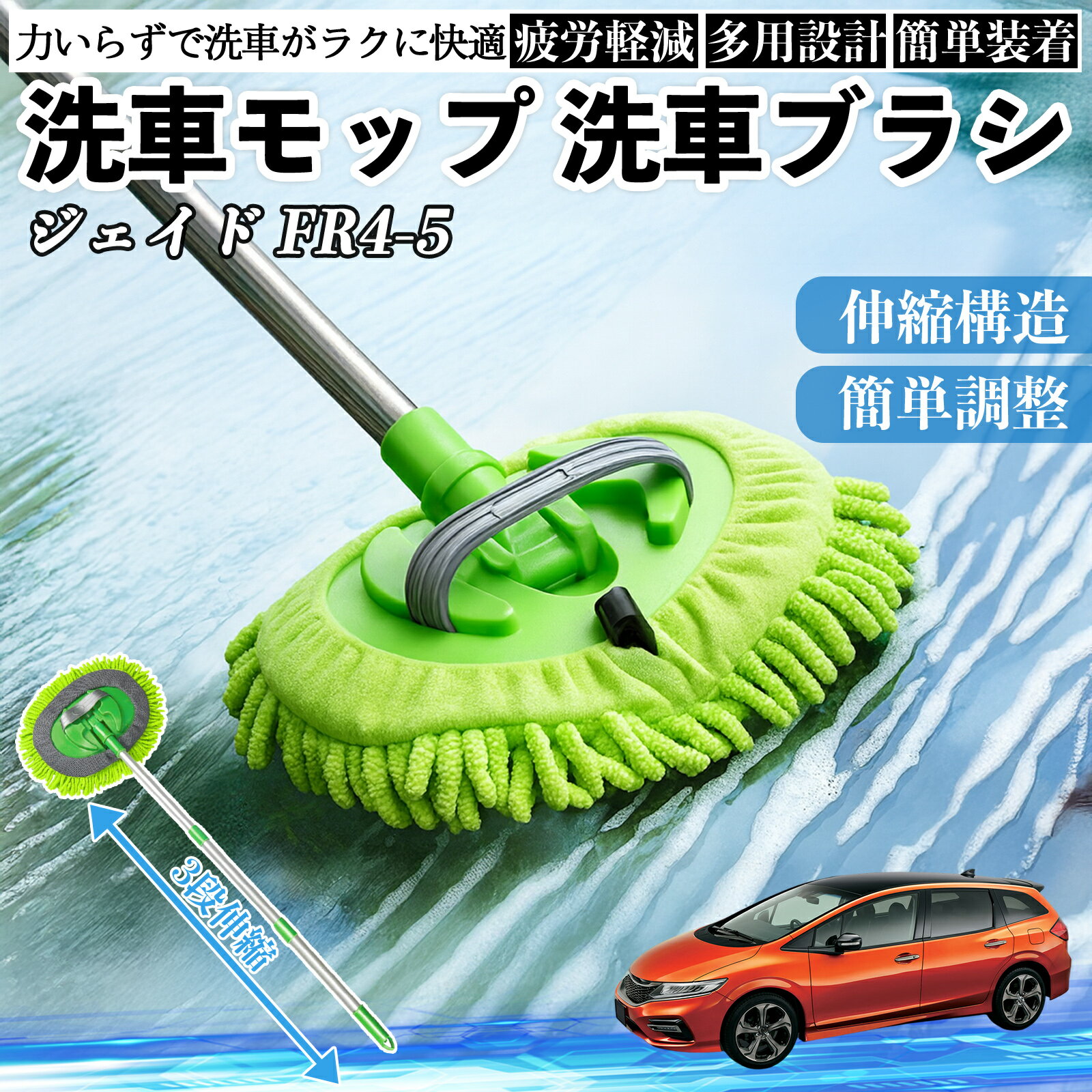 本田 ジェイド JADE FR4 FR5 洗車ブラシ 洗車モップ 伸縮式 180度回転 傷つ...