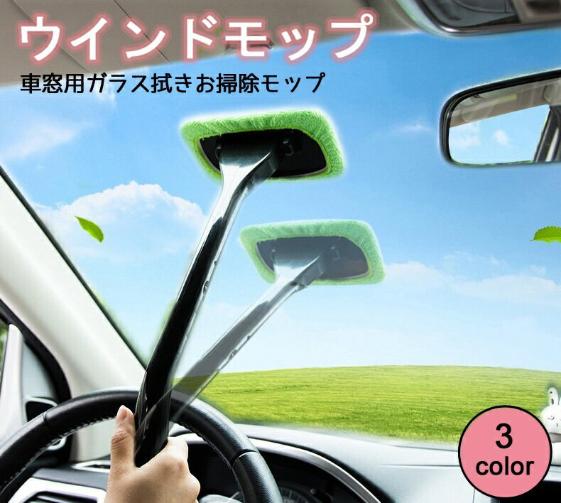 ウィンドウモップ 柄付き マイクロファイバー カー用品 洗車道具 ガラスクリ...