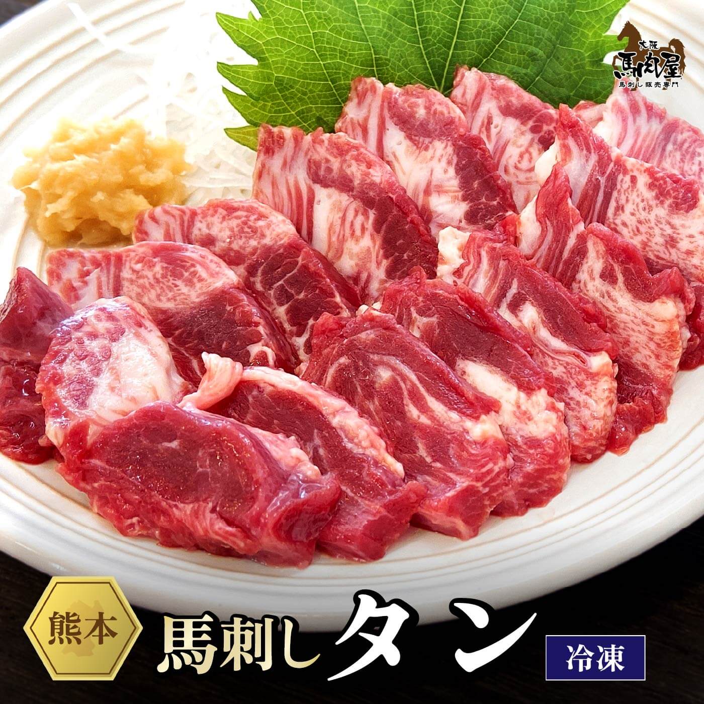 商品名 馬刺し タン 内容量 1パック 約50g 部位説明 【馬刺し タン(約50g)】 牛タンと同様歯ごたえが特徴。生で食べられるタンは人気の希少部位。馬刺しのたれでも塩レモンでも美味しいですよ 産地 「カナダ・フランス産、国内肥育」もしくは「国産」(いずれも最終肥育地・と畜・加工は熊本県) 加工業者 【熊本県...