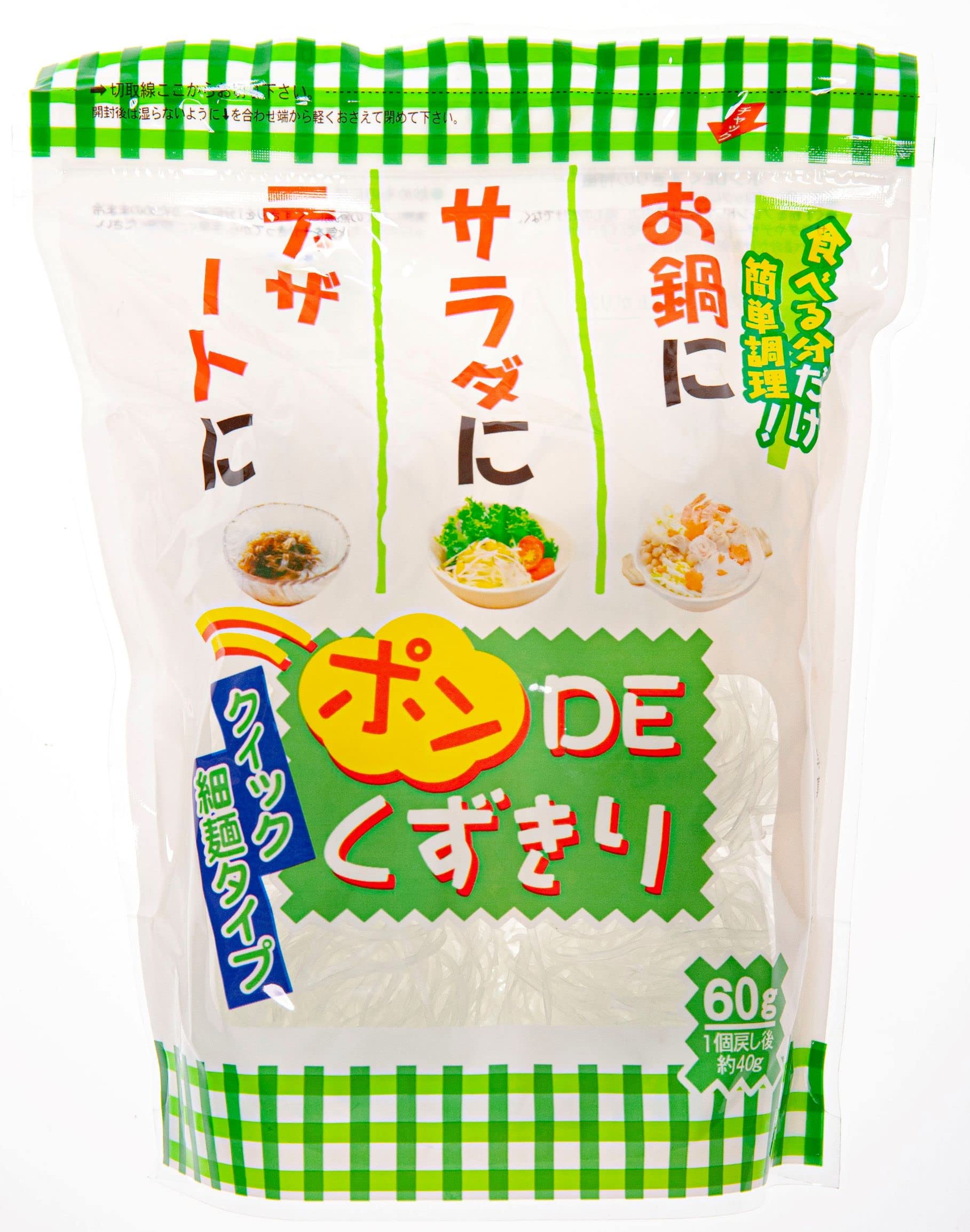 商品情報商品の説明下茹で不要の簡単便利なお手軽くずきりです。 丸型ブロックタイプのくずきりが6個入りで、食べる分だけを簡単に調理できます。 お鍋やサラダ、炒めものなどでお召し上がり下さい。 一度に全部使わない時などに便利なチャック付です。 本品は中国にある弊社合弁工場で製造しています。主な仕様 内容量:...