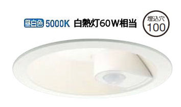 大光電機 人感センサ付ダウンライト 軒下使用可 DDL5394WW 工事必要