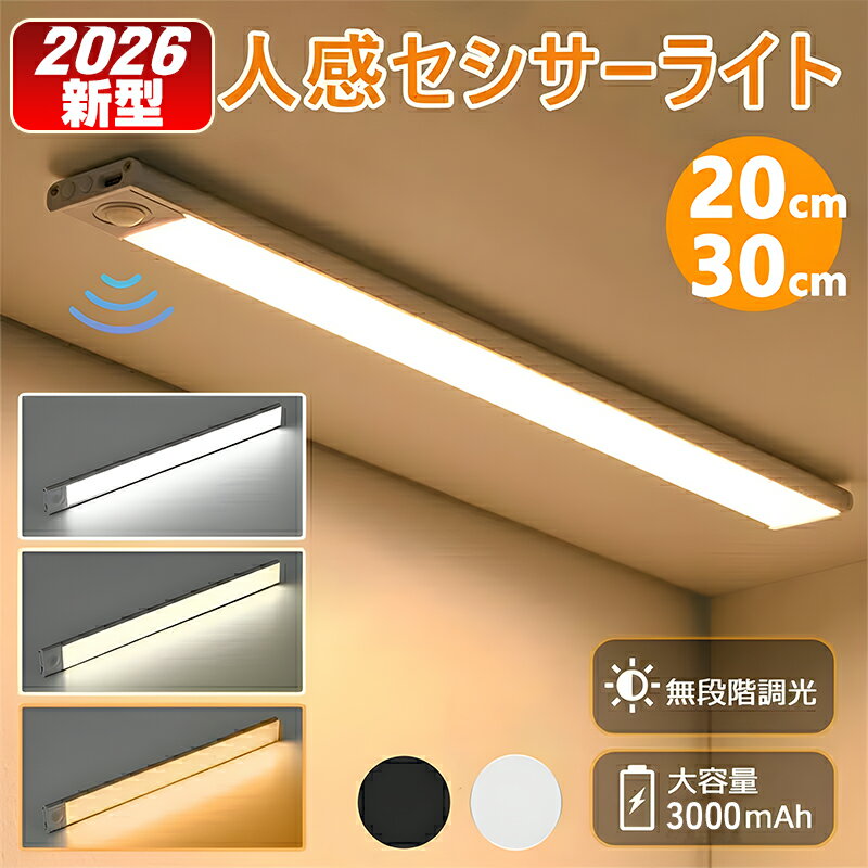 最新進級品★薄型LED人感センサーライト - 超薄型・マグネット式・3色調光 ■商品仕様 ・商品名:薄型LED人感センサーライト ・感知方式 :人感センサー(赤外線) ・調光色温度:電球色(3000K)、昼白色(4000K)、昼光色(6000K) ・素材 :アルミニウム合金 + PC ・サイズ(幅×高さ×厚さ):200×40×9mm/300×40×9mm ・...