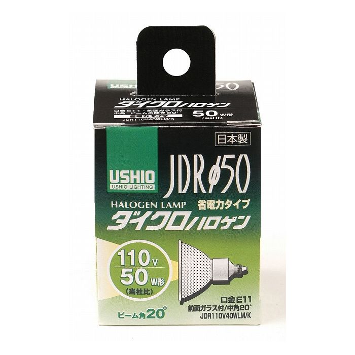 【商品詳細】定格:・電圧110V・消費電力 40W・寿命:約3,000時間本体サイズ:・全長:62mm・バルブ径:50mm・口金:E11入数:1個ビーム角:中角20°全光束:540lm最大光度:1750cdダイクロハロゲン(JDRφ50)省電力タイプ50W形(当社比)外径50mmのダイクロイックミラーを使用した代表的なハロゲン電球です。生鮮食料品や服...