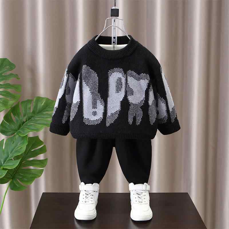 ・カテゴリ: キッズセーター・性別: 男・スタイル: カジュアル・対象年齢: 3〜8歳・毛糸の太さ: 細め・厚さ: 厚手・袖丈: 長袖・タイプ: プルオーバー・柄: アルファベット・主な素材: 綿90%・カラー展開: ブラック、オフホワイト・サイズ展開: 90cm、100cm、110cm、120cm、130cm、140cm、150cm
