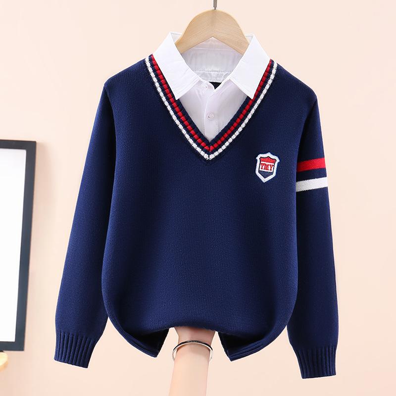 ニット キッズ 子供服 男の子 綿 春秋 セーター 秋冬 裏起毛 厚手 重ね着風 おしゃれ 中学生 小学生・性別: 男・スタイル: 学院・対象年齢: 中大童(8歳以上、140cm以上)・シーズン: 冬、春、秋・毛糸の太さ: 普通・厚さ: 厚手・袖丈: 長袖・留め具: プルオーバー・柄: 無地・素材: 綿100%・ネックライン: 襟付き・フード...