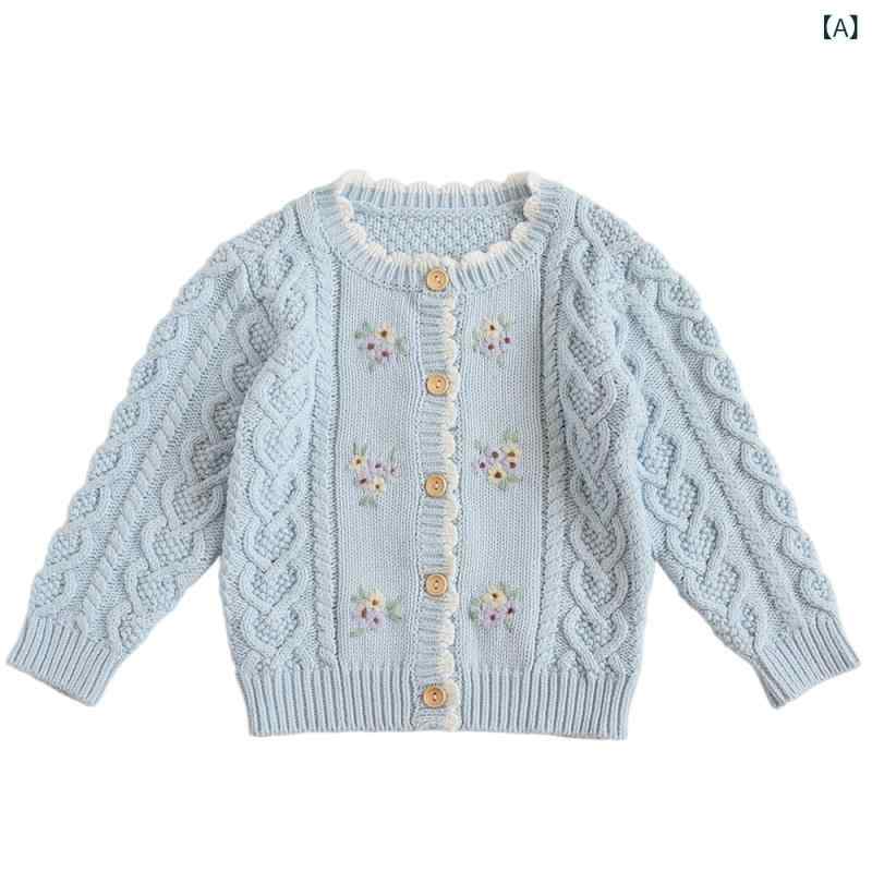 ニット キッズ 女の子 カーディガン 綿 手刺繍 小花柄 春秋 80cm 90cm 100cm...