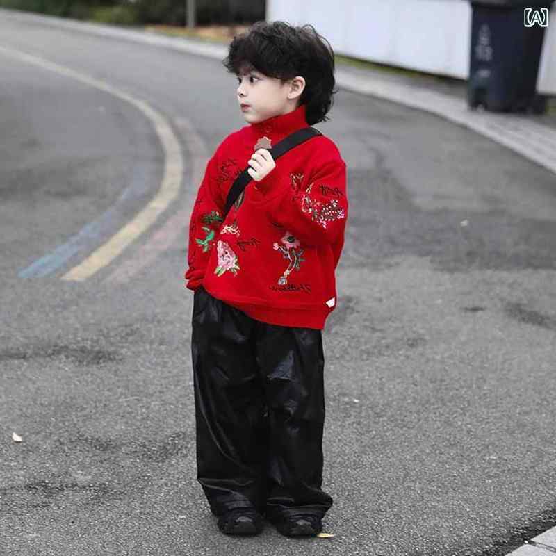 ニット キッズ 子供 秋冬 セーター トップス 高襟 防寒 あったか おしゃれ かわいい 男の子 和風 お正月 普段使い