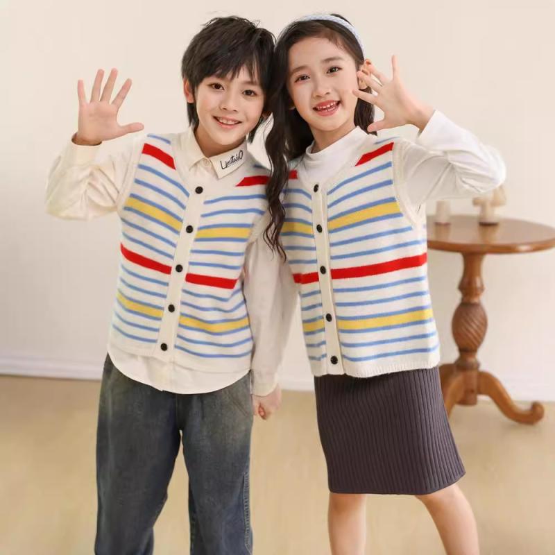 子供服 ベスト ニットベスト 男女兼用 ウール ストライプ柄 秋冬 セーター 中童 大童 チョッキ 普段着 防寒着