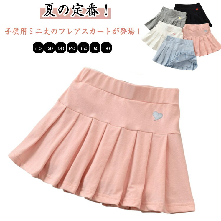 夏の定番!子供用ミニ丈のフレアスカートが登場!薄手のよく伸びるストレッチ素材でさらさらで汗をかいても爽やかに過ごせます。インナーパンツ付きのデザインで、チラ見えを防止します。ふんわり広がるフレア感が美脚を演出してくれます。無地なので、トップスのデザインを問わずに着れます。 サイズ 100 110 120 130 1...