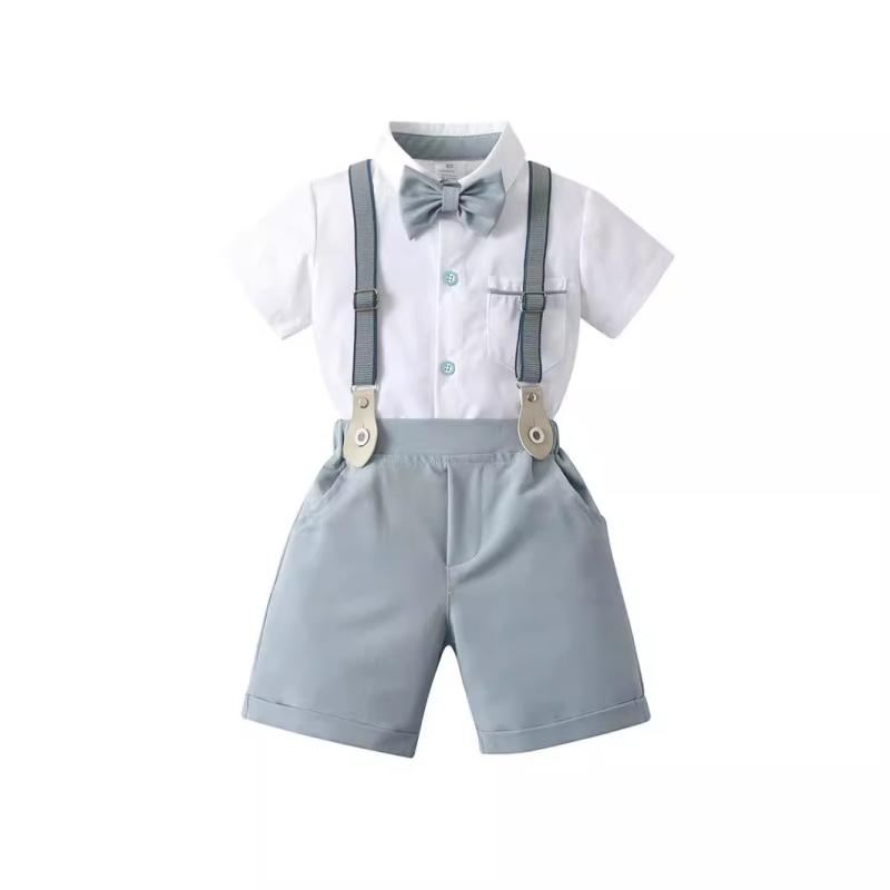 ・対象: 男の子・スタイル: ブリティッシュ・タイプ: セットアップ・推奨年齢: 3〜8歳・袖丈: 半袖・加工: 柔軟加工・厚さ: 薄手・柄: 無地・主な素材: 綿・留め具の種類: 前ボタン・サイズ展開: 73, 82, 91, 100, 109, 118
