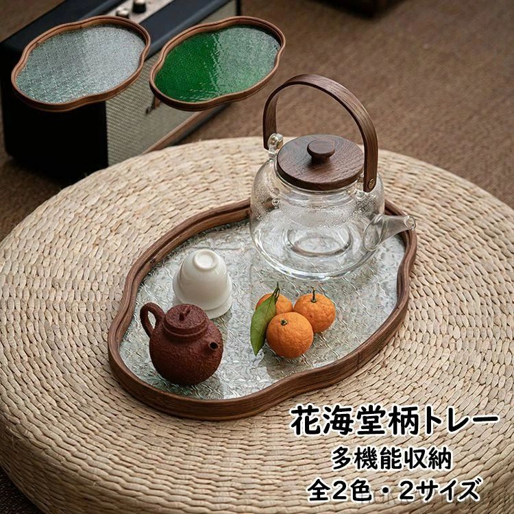 茶盤 トレイ トレー レトロ 竹製 中国茶器 ガラス 茶席 茶道具 茶台 お盆 イ...