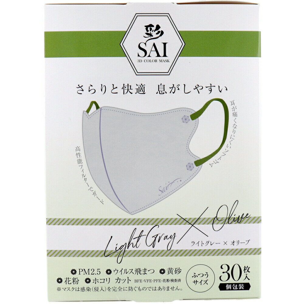 彩(SAI) 立体カラーマスク 個包装 ふつうサイズ ライトグレー×オリーブ 30枚入