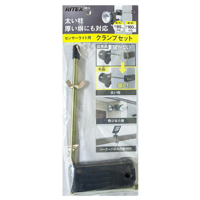 <musashi センサーライト用 クランプセット オプションパーツ 防犯 ムサシ SP-5> 太い柱、厚い塀にも対応するセンサーライト用クランプセットです。 品名センサーライト用クランプセット 品番SP-5 本体サイズW100×D7×H205mm 重量120g 対応サイズ円柱:直径3.0〜8.5cm、角柱:直径1.5〜16cm 商品写真は、 お使いのモニ...