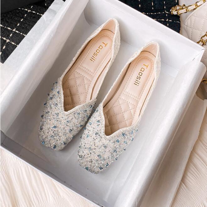 パンプス 痛くない vカット キラキラ オフィス ローヒール ぺたんこ ラインストーン バレエシューズ フラットパンプス スクエアトゥ 走れる ぺたんこ クッシ