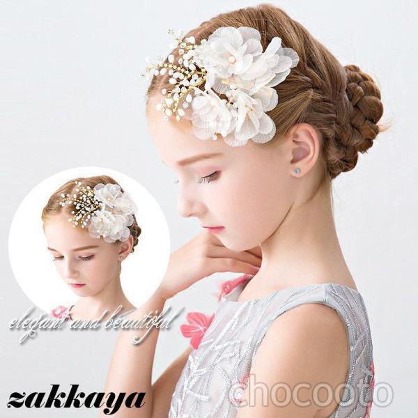 ヘアアクセサリー 子供髪飾りフォーマル ドレス アップ 花 パール付き ヘア...