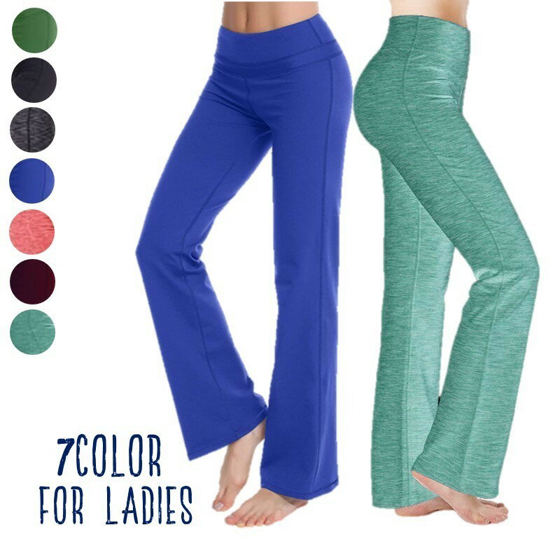 送料無料 ヨガパンツ ロングパンツ 長ズボン セミフレア ボトムズ レディー...