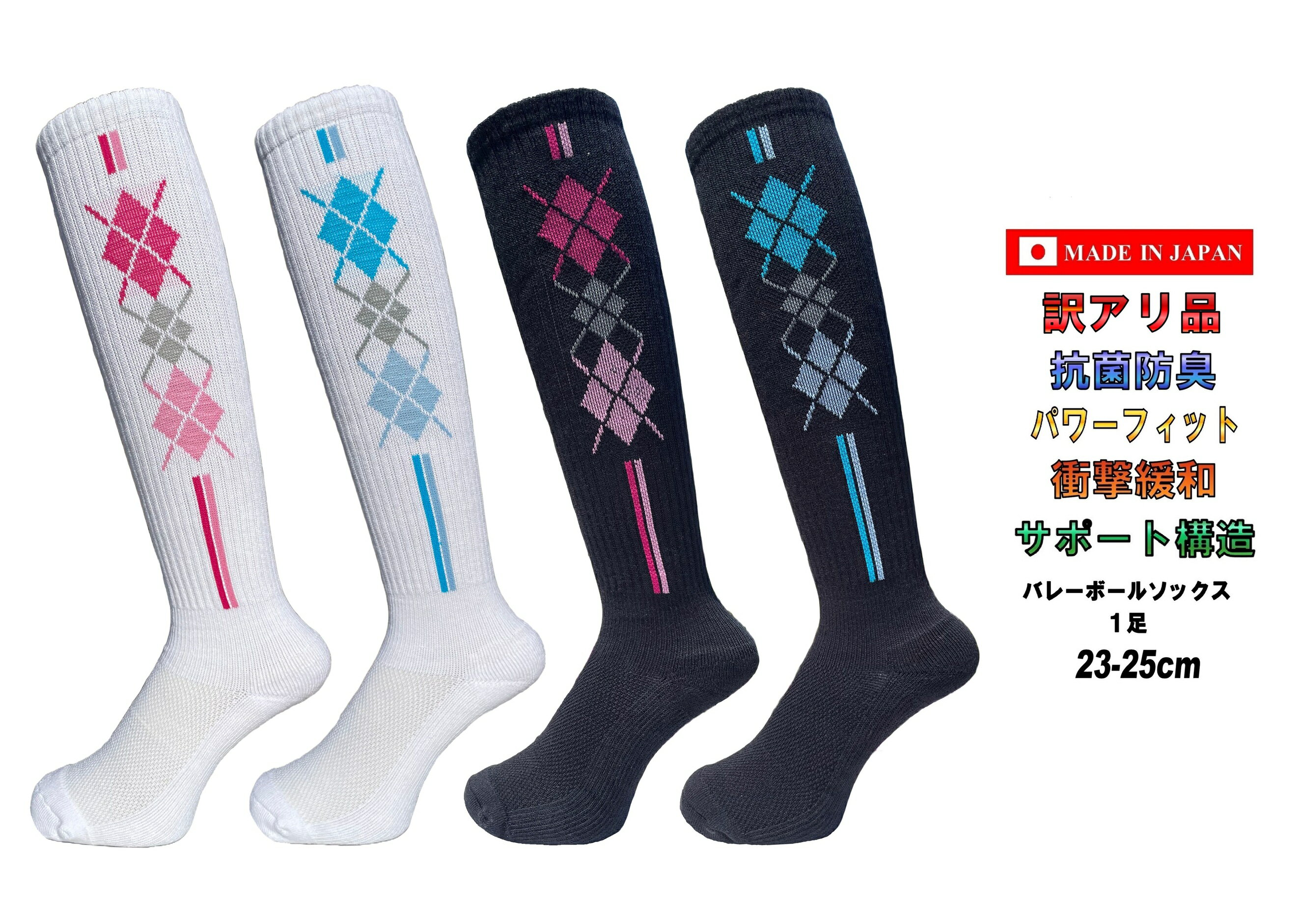 日本製 レディース バレーボールソックス ハイソックス 23-25cm 1足 4カラー...