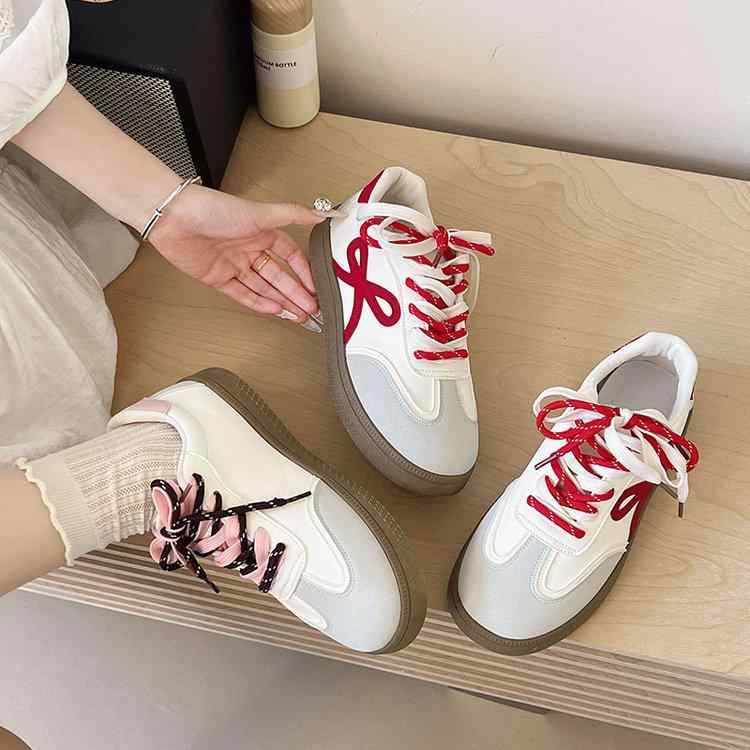・スタイル: スポーツ風・流行要素: カジュアル・つま先形状: ラウンドトゥ・アッパー素材: PU・対象性別: 女性・ヒール高: 1-3cm・パターン: ツートン・カラー: 赤,ピンク・サイズ: 36,37,38,39,40,41,42・アウトソール素材: ゴム・アンクル高: ローカット・ヒール形状: 厚底・アウトソール加工: 注塑・着用方法: フロ...