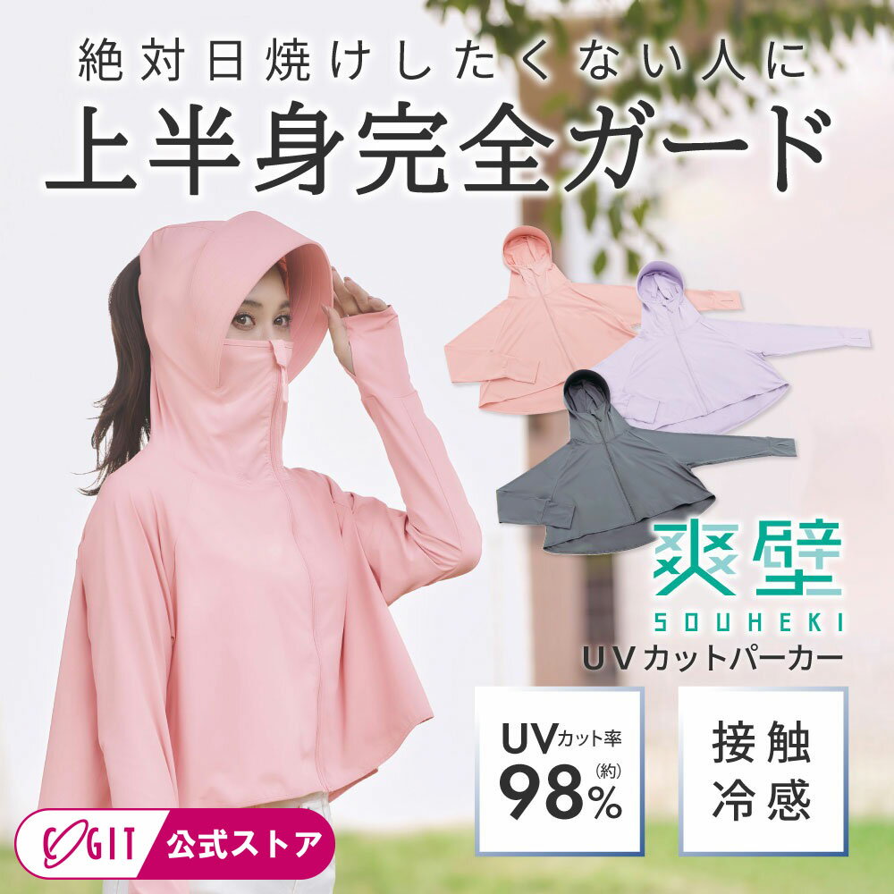 爽壁 UVパーカー フェイスガード 顔まで フード大き目 ショート丈 レディー...
