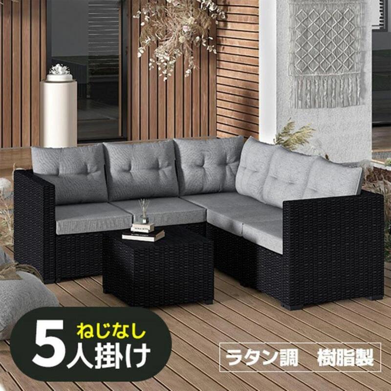 ラタン調 ガーデンファニチャー 5人掛け ラタン調 ガーデンテーブル テーブ...