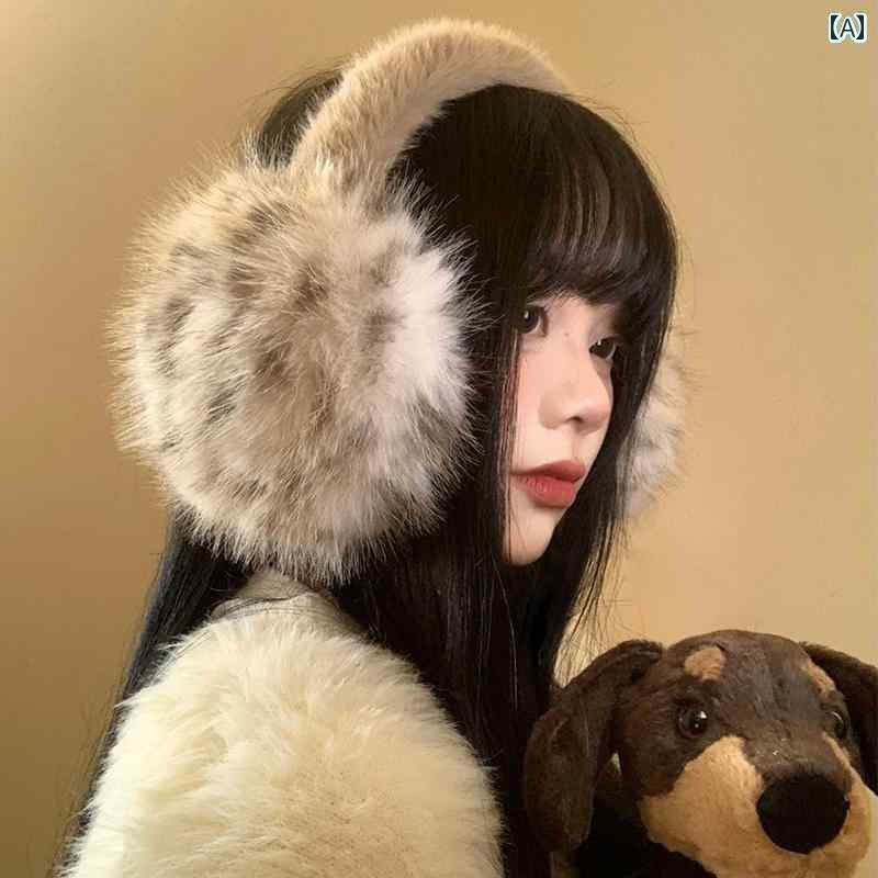 耳あて 防音 おしゃれ 女性用 ヒョウ 柄の な イヤーマフ 冬用 ふわふわ ...