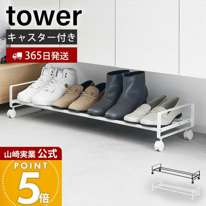 【365日出荷】山崎実業 引き出せるキャスター付きシューズラック タワー tow...