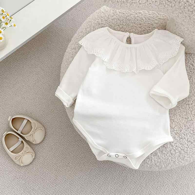 ロンパース ベビー服 長袖 Aライン 春秋 綿100% 女の子 幼児 無地 かわいい ...