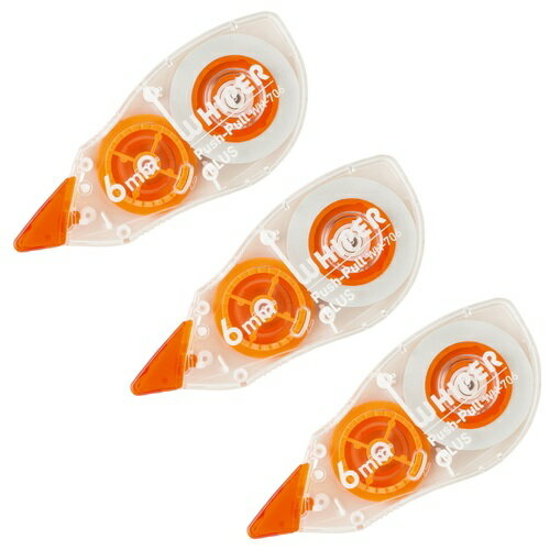 プラス 修正テープ ホワイパー プッシュプル 3個パック 6幅 オレンジ 49-966