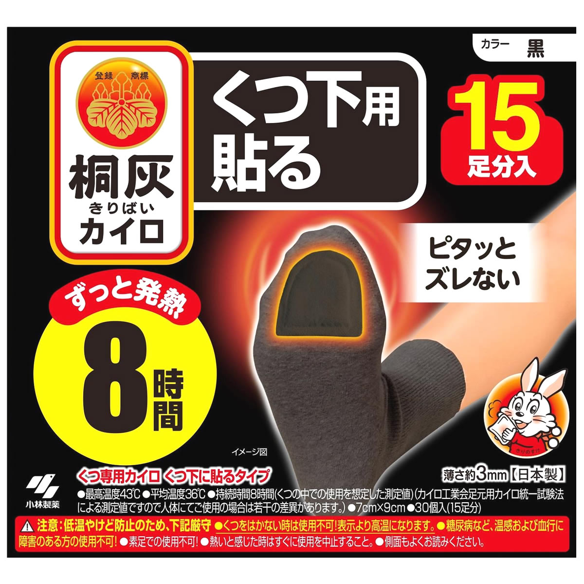 小林製薬 桐灰カイロ くつ下用 貼るつま先 黒 30個 (15足分) くつ下に貼るタ...