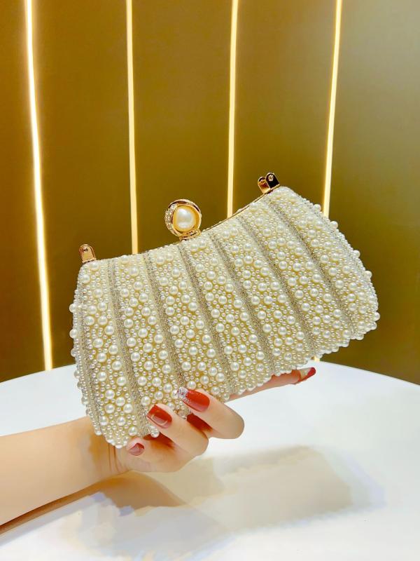 イブニングバッグ レディース 大容量 高級感 パール 楕円形 ロック開閉 小型...