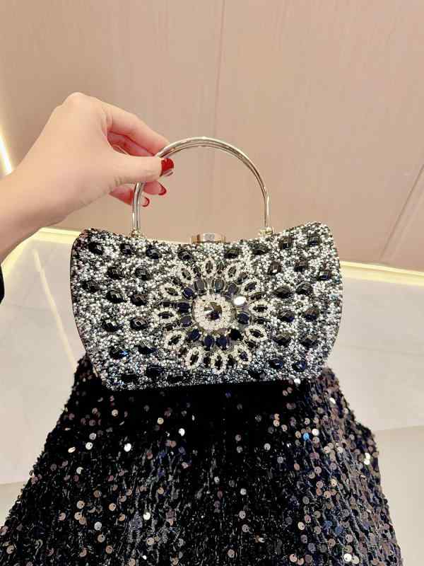 ・主な素材: ポリエステル・使用シーン: デイリー・裏地素材: ポリエステル・バッグの種類: ボックスバッグ・内部構造: 携帯電話用ポケット、オープンポケット・形状: ボックス型・要素: スパンコール、ラインストーン・開閉方法: ロック式・スタイル: 海外トレンド・硬さ: ハード・外ポケットの種類: オープンポケット...