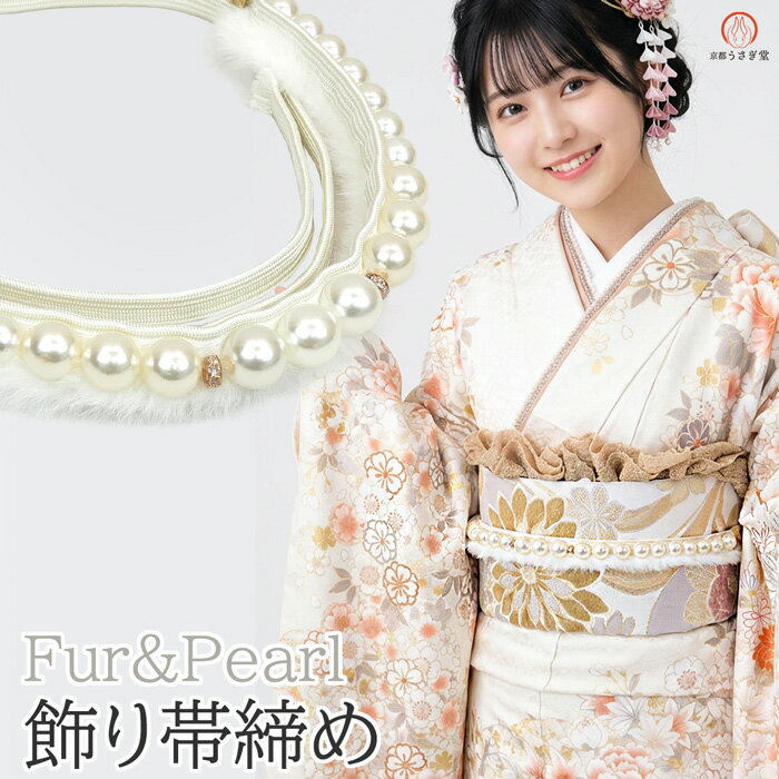 正絹(絹100%)のモダンで可愛らしい飾り帯締めです。 <おすすめポイント> 絹糸100%の平の帯締めに、フェイクパールやフェイクファー、ラインストーンが装飾されております。 パールは大粒でとても豪華!真っ白のファーはふわふわです。 絹特有の滑らかな手触りとハリがあり、しっかりと締めて頂く事が出来ます。 <用途...