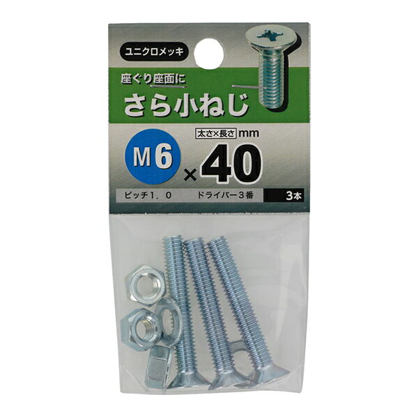 【メール便可】八幡ねじ さら小ねじ M6×40 3本入