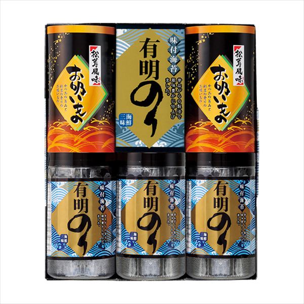 商品説明 ピリッとした味わいの明太子風味、梅香るさっぱり味の梅しそ味、上品な味付けに仕上げた味海苔ギフト 商品詳細 恵味満彩 味付のり詰合せ YEM-50 SPEC ●内容 : 有明海産味付のり(8切5枚×2袋)×5、有明海産味付のり梅しそ風味(8切5枚×2袋)×2、有明海産味付のり明太子風味(8切5枚×2袋)×3 ※すべて海苔は有明海産 ●ア...