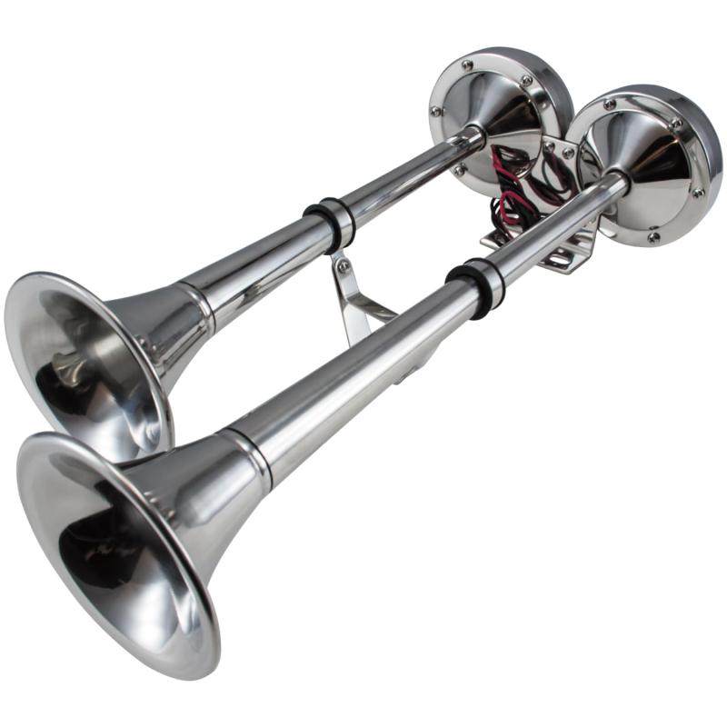 ●トラック用アクセサリー・補修パーツ●威風堂々! 大迫力! ビックホーン ツインタイプ!!●ステンレス製24V車用ビックホーン。●ビックホーン独特の重低音と乾いたようなサウンド、また2連から奏でるハモリをお楽しみください。※空気圧は8kg/平方cm(113psi)以内でご使用ください。9kg以上だと正常に作動しない場...