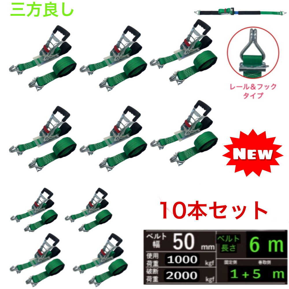 三方良し 10本 新タイプ荷締機ベルト収納式 ラッシングベルト レール&フッ...