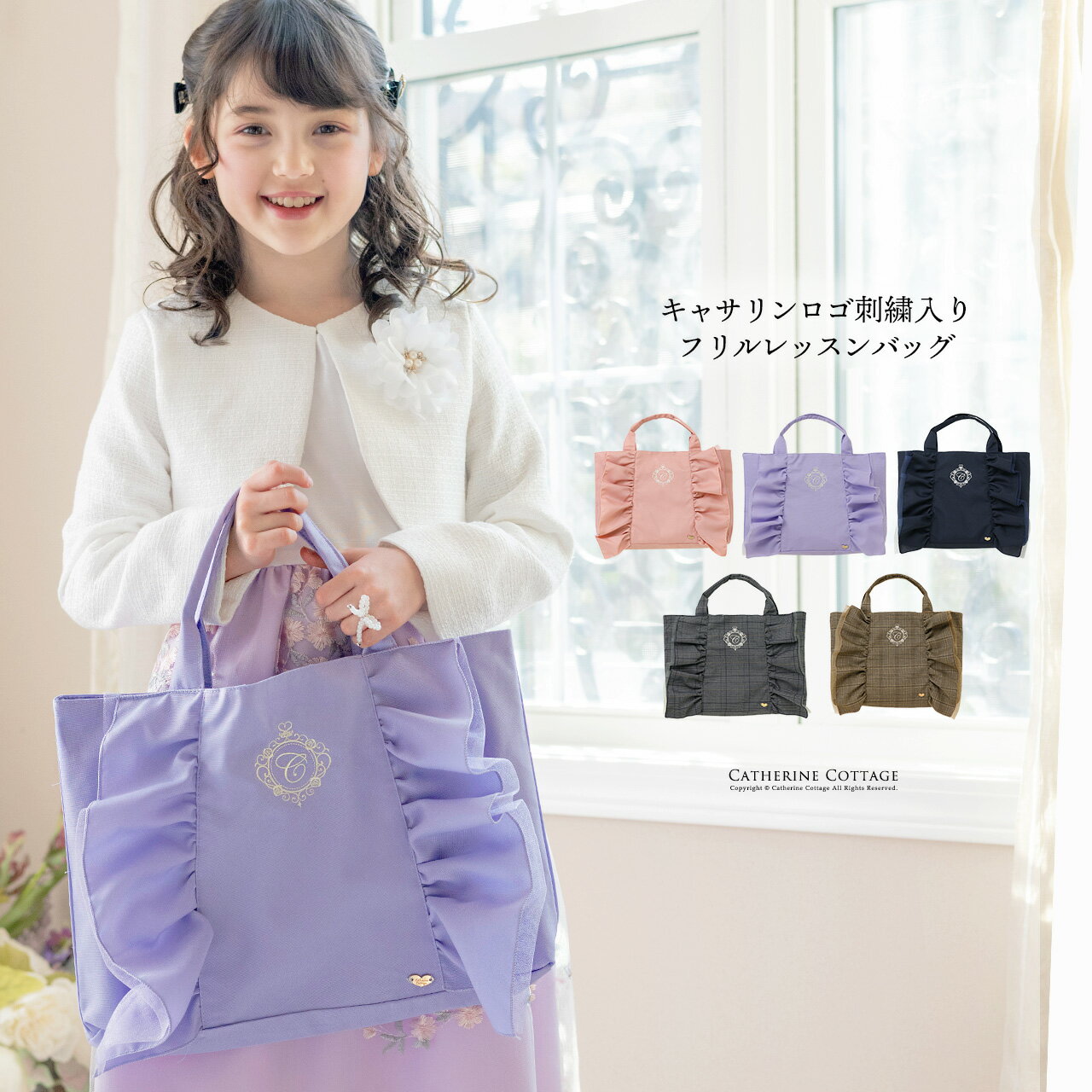 送料無料 入学準備セール目玉 レッスンバッグ 女の子 ロゴ刺繍入り フリルレ...