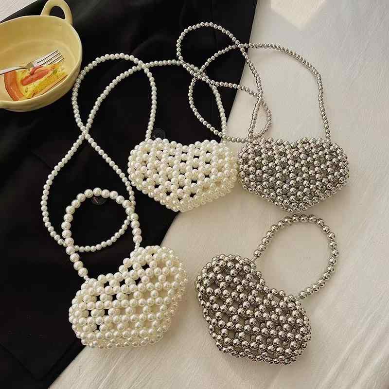 ・スタイル: スイート・素材: アクリル・バッグの形状: 円形・バッグのサイズ: ミニ・バッグのトレンドスタイル: 編み込みバッグ・開閉方法: オープン・硬さ: 中程度・外ポケット: オープンポケット・内ポケット: なし・ショルダーベルト: シングル・利用シーン: デイリーユース・流行の要素: 編み込み・カラー: パール...