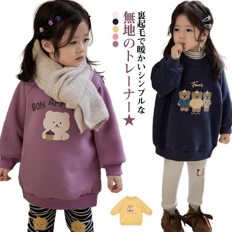 小学生 厚手 冬 秋 柔らかい 子供服 綿 可愛い スウェット 裏ボア 長袖トッ...
