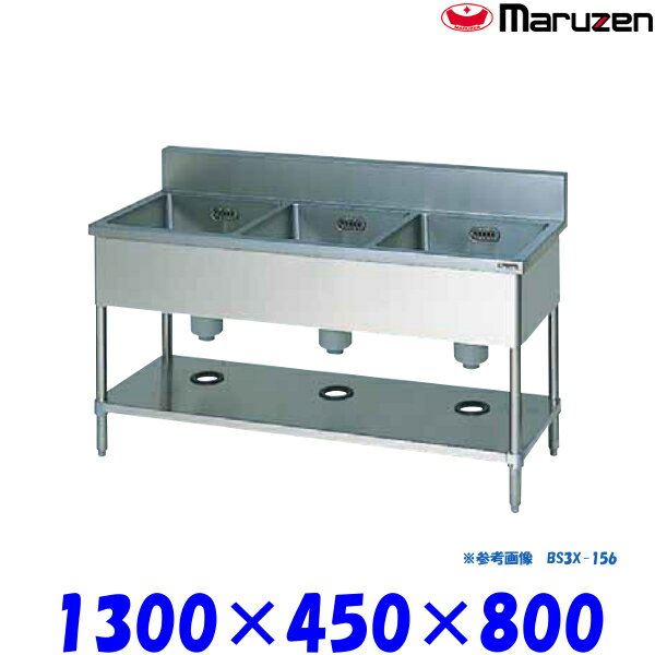 マルゼン ブリーム BS3-134 ステンレス製 三槽シンク 1300×450×800mm JFEA適...