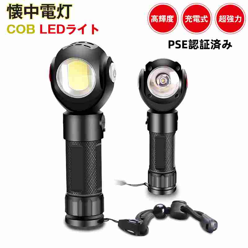 LEDライト cobライト 懐中電灯 PSE認証済み 防犯カメラ 型 LED 充電式 7つの...