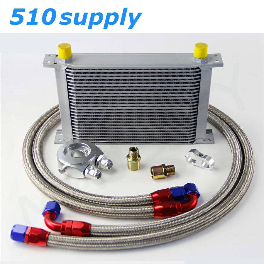 ■■■ Description 商品説明 CSKS製 汎用オイルクーラー type1 特徴 コア段数:25 コア部サイズ:縦18.3cm/幅29.3cm/奥行5.1cm 全体サイズ:縦20.8cm/幅33.0cm/奥行5.1cm ホース材質:ステンメッシュ カラー(コア):シルバー カラー(アタッチメント):シルバー 内容品 アルミ製オイルクーラー オイ...