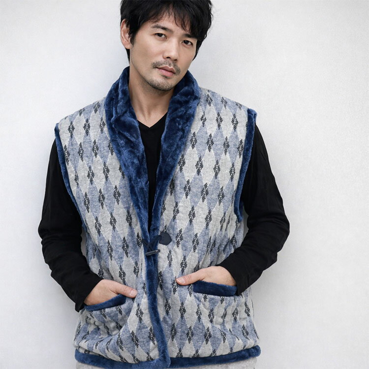 ヘチマ衿 裏ボア あった ベスト メンズ ルームウエア あったかベスト ぽんち...