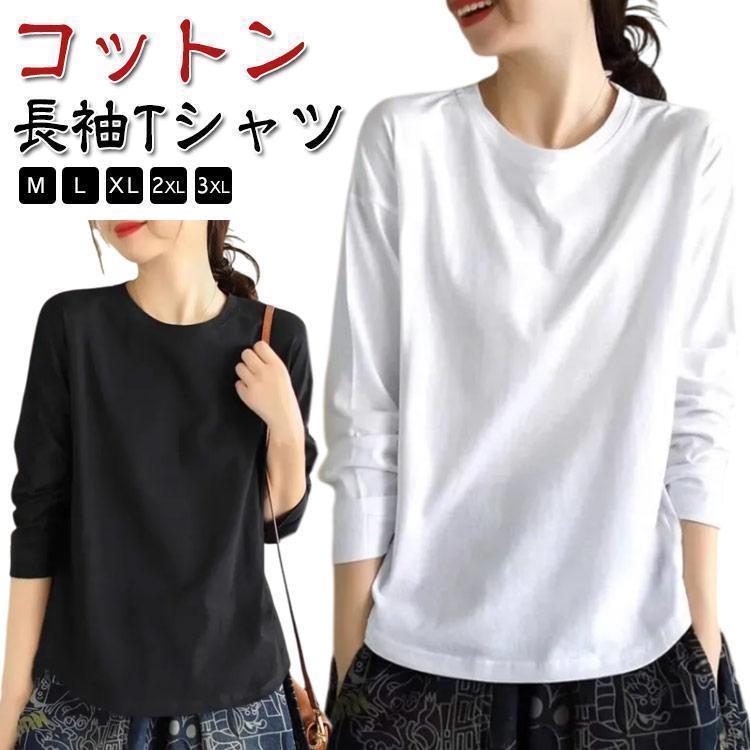 秋物 長袖tシャツ 白 ロンt 秋冬 春 大人 コットン クルーネック ロングtシ...