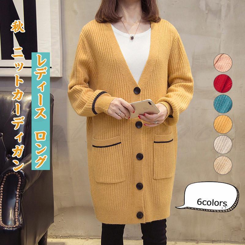 ニットカーディガン レディース アウター ロング丈 長袖 Vネック トップス ...